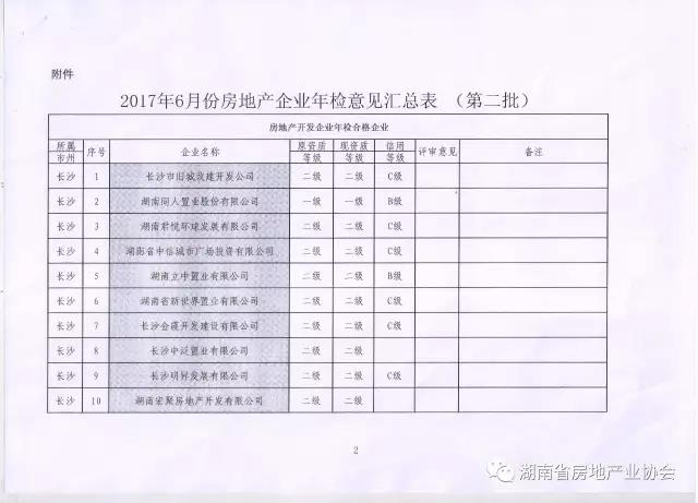 湖南省房地產(chǎn)業(yè)協(xié)會(huì)關(guān)于2016年第二批年檢意見(jiàn)的公示