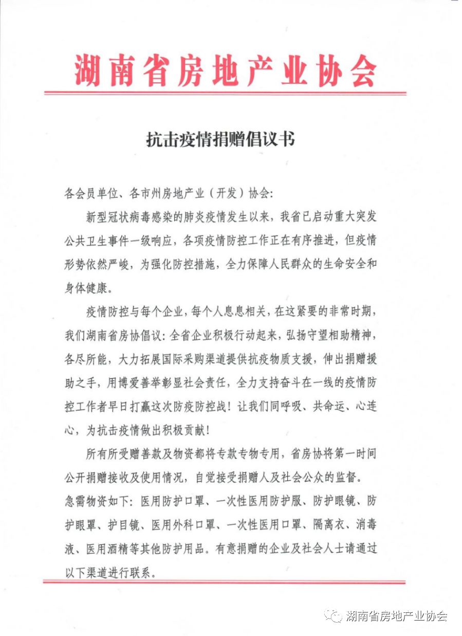 一方有難,八方支援,抗擊疫情,共克時艱!倡議發出后,各開發會員單位積極響應,奉獻愛心!截止至2月21日,全省共17家省房協開發會員單位加入愛心捐贈隊伍,其中大漢城鎮建設有限公司捐贈口罩20000個;湖南保利房地產開發有限公司捐贈2500ml的酒精100瓶、20KG消毒液的80桶;湖南省中欣房地產開發集團有限公司捐贈護目鏡200副、酒精50桶、方便面20箱、口罩1000個;長沙雙瑞房地產開發有限公司捐贈價值20000元口罩;長沙方略投資發展有限公司捐贈價值10000元口罩等等(詳見附件)……