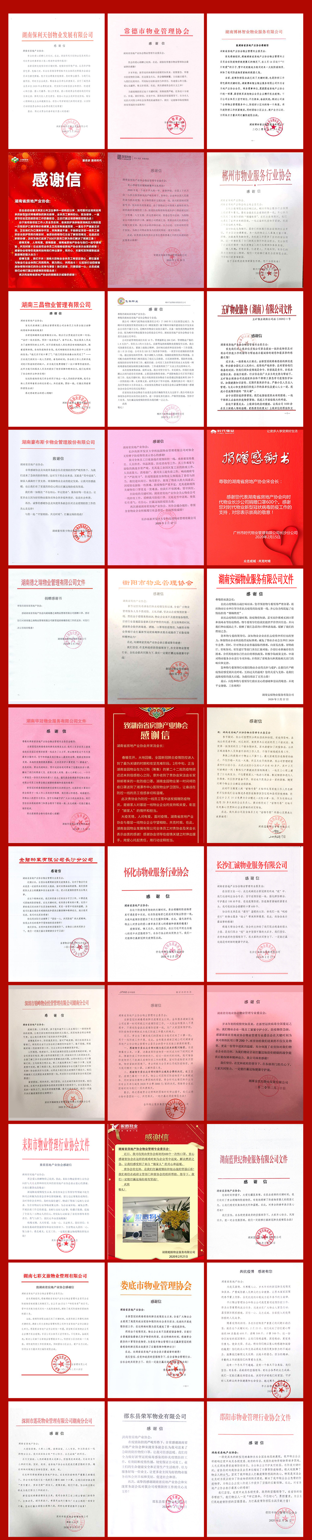 自疫情發生以來,湖南省房協向全社會發出倡議,積極募集防疫物資,向會員單位進行捐贈,同時組織對各市州物業管理協會、各物業企業會員單位和非會員單位進行定向捐贈。當協會致力于使我省房地產行業防疫工作得到更多關注和支持時,協會收到來自市州協會和會員單位的感謝信。