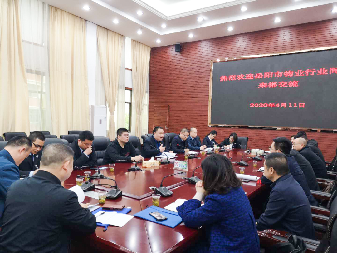 為促進友好協會的溝通,有效解決物業服務過程中涉及的相關問題,2020年4月11日上午,岳陽市物業服務行業協會來郴州物協開展物業管理工作交流座談會。參加本次座談會的有:岳陽市物業服務行業協會一行十人、郴州市住房和城鄉建設局物管科曹毅科長、郴州物協秘書長鄧學軍、輪值會長熊琦、黃志華、李海軍及協會部分專家。
