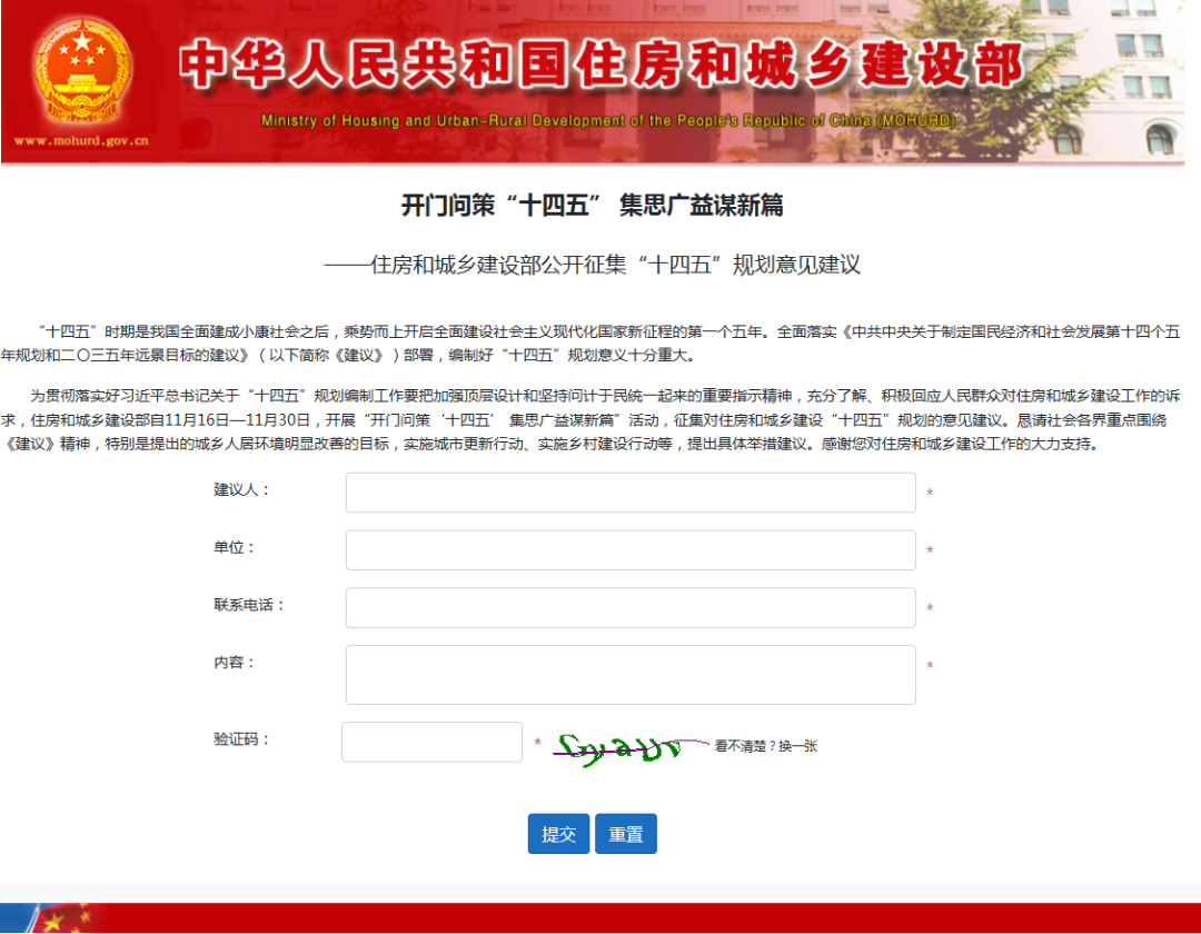 住房和城鄉(xiāng)建設(shè)部公開征集“十四五”規(guī)劃意見建議