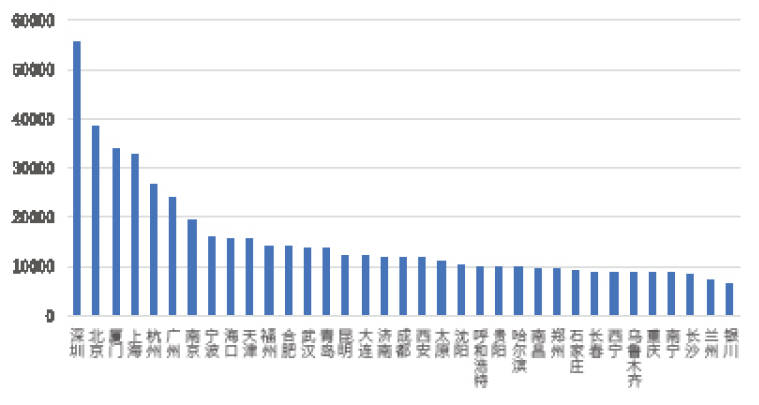 | 廈門 | 96.3 | 西安 | 62.4 | 哈爾濱 | 49.0 |
