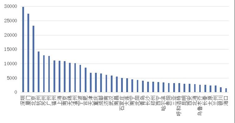 | 深圳 | 82.3 | 保定 | 57.9 | 青島 | 39.9 |