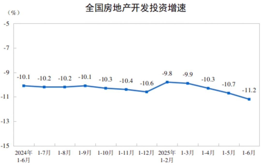 7月15日,國家統(tǒng)計局公布的全國房地產(chǎn)市場基本情況顯示,1-6月份全國房地產(chǎn)開發(fā)投資46658億元,同比下降11.2%;新建商品房銷售面積45851萬平方米,同比下降3.5%;新建商品房銷售額44241億元,下降5.5%。