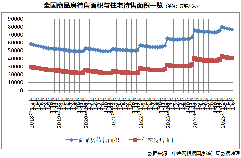 此外,從商品房庫存看,連續(xù)四個月減少。截至6月末,商品房待售面積76948萬平方米,比5月末減少479萬平方米。其中,住宅待售面積40821萬平方米,減少443萬平方米。