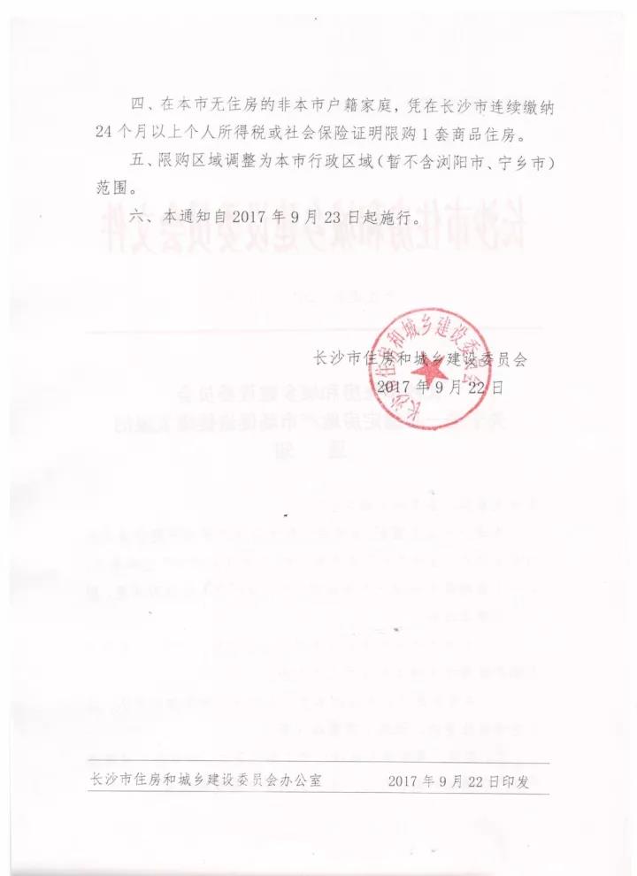 此外,通知全面升級了調(diào)控范圍,包括內(nèi)六區(qū)和長沙縣全域,暫不含瀏陽市、寧鄉(xiāng)市。該通知自9月23日起施行。