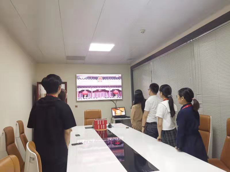 中原集團:中共中原(湖南)房地產(chǎn)代理有限公司黨支部組織全體黨員及員工認真觀看慶祝建黨100周年大會直播,當國歌響起全體黨員自覺起立唱起國歌。