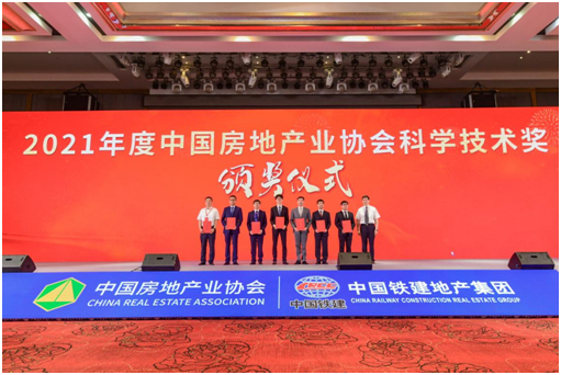 本次論壇上,對“2021年度中國房地產業協會科學技術獎授獎項目”進行了現場頒獎。本年度共評出授獎項目20項,包括一等獎5項,二等獎7項,三等獎8項。其中,我會會長單位湖南建工集團有限公司的項目“混凝土裝配式模塊化產品技術體系研發與應用”榮獲二等獎。?