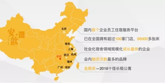 安歆·YU是全國起步最早、發展最快、規模最大的企業員工住宿服務品牌,一直助力政府解決城市租房壓力及安全等社會問題,為企業提供酒店式、連鎖化、專業性的“一站式”員工住宿服務,在北京、上海、杭州、廣州、長沙、深圳、南京、福州、武漢已擁有超過100家門店,超50000個床位。