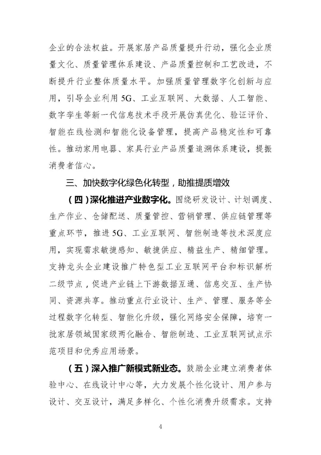 《方案》明確發展目標,到2025年,在家用電器、照明電器等行業培育制造業創新中心、數字化轉型促進中心等創新平臺,重點行業兩化融合水平達到65%,培育一批5G全連接工廠、智能制造示范工廠和優秀應用場景。反向定制、全屋定制、場景化集成定制等個性化定制比例穩步提高,綠色、智能、健康產品供給明顯增加,智能家居等新業態加快發展。