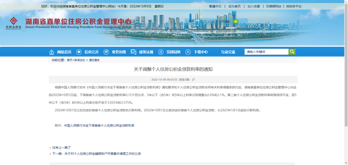 10月9日,湖南省直公積金管理中心發(fā)布了《關(guān)于調(diào)整個人住房公積金貸款利率的通知》,宣布: