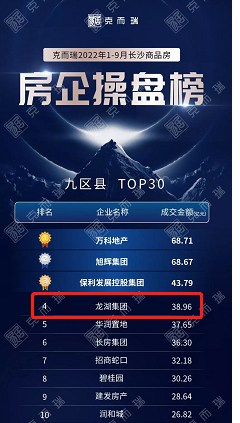 2022年以來,樓市銷售低迷,市場分化現(xiàn)象凸顯。而在克而瑞湖南區(qū)域最新發(fā)布的2022年前三季度長沙房地產(chǎn)銷售排行榜上,龍湖在長沙爆發(fā)力強勁,以成交金額38.96億元,排名長沙房企操盤榜第4名。值得一提的是,今年一季度,在該榜單上,長沙龍湖還位列第19名。同時這也是時隔三年龍湖在長沙首次重回TOP5。