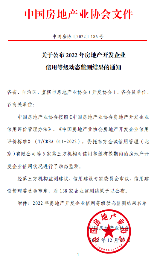 喜訊 | 省房協推薦的會員房企榮獲2022年全國信用評價AAA等級