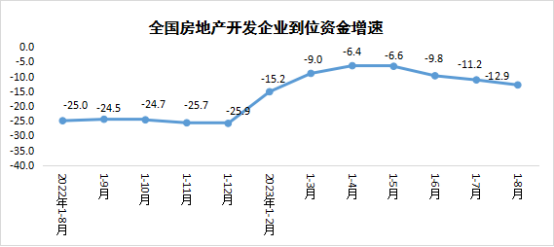 1—8月,房地產開發企業到位資金87116億元,同比下降12.9%。其中,國內貸款10671億元,下降12.8%;利用外資35億元,下降41.6%;自籌資金27195億元,下降22.9%;定金及預收款30185億元,下降7.3%;個人按揭貸款15453億元,下降4.3%。