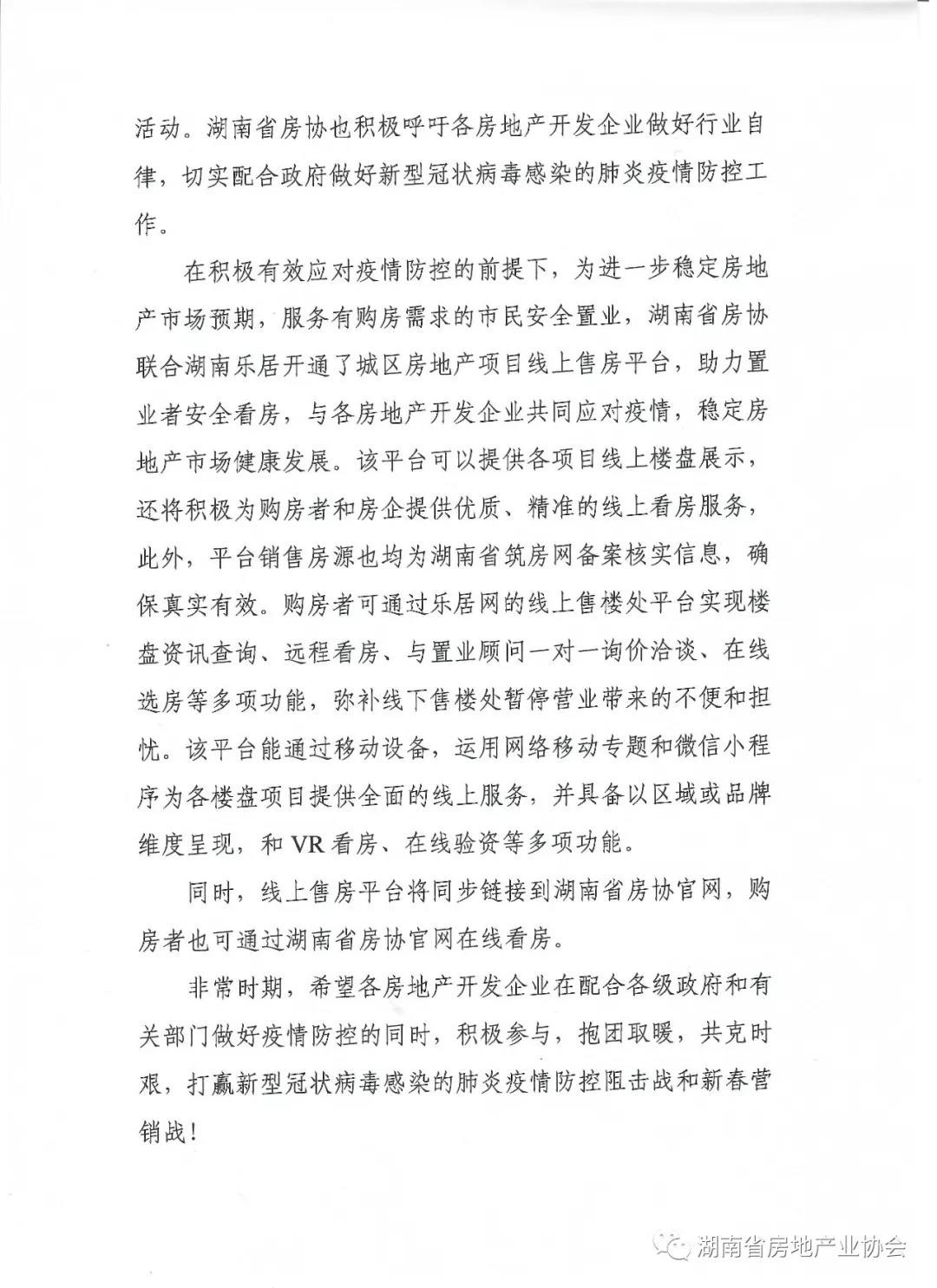 湖南省房地產業協會關于開通城區房地產項目線上售房平臺的通知
