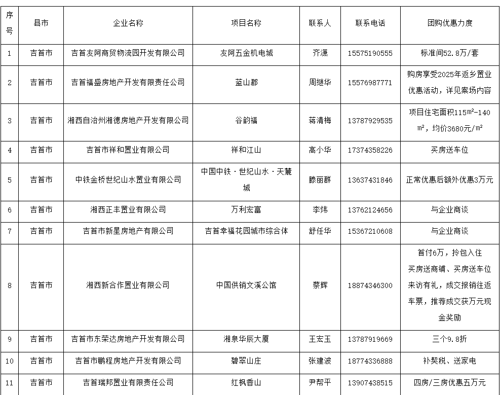 湘西州新春置業(yè)優(yōu)惠活動(dòng)項(xiàng)目清單表