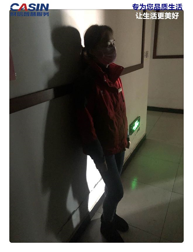 ___客服小姐姐疫情巡查、走訪累了,一天下來骨頭都散了,腿也僵了,倚靠著消防樓道墻小憩一會。