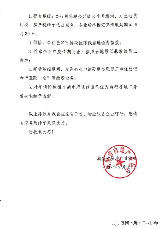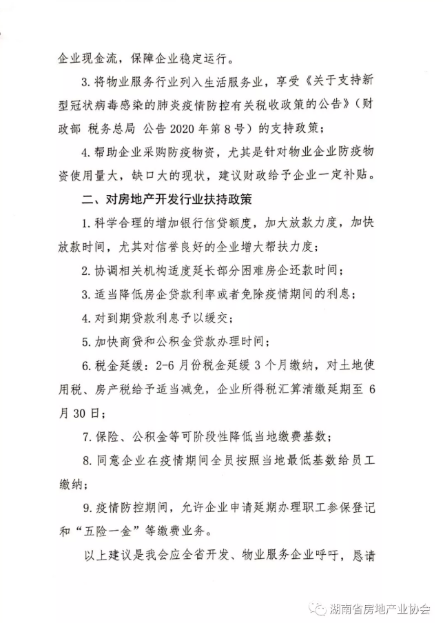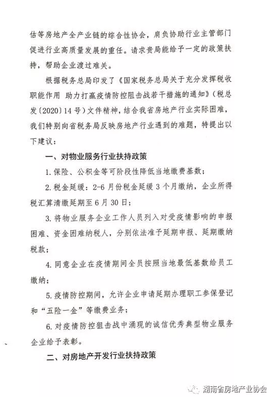 新型冠狀肺炎疫情發(fā)生以來對我省房地產(chǎn)行業(yè)生產(chǎn)經(jīng)營造成巨大影響,為幫助企業(yè)渡過難關(guān),近日,省房協(xié)已向湖南省財(cái)政廳、湖南省稅務(wù)局分別提交了政策建議,為行業(yè)復(fù)蘇、發(fā)展?fàn)幦∝?cái)稅方面的扶持政策。