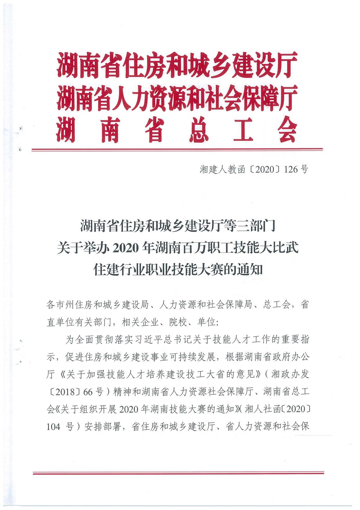湖南省住建廳等三部門關(guān)于舉辦2020年湖南百萬職工技能大比武住建行業(yè)職業(yè)技能大賽的通知