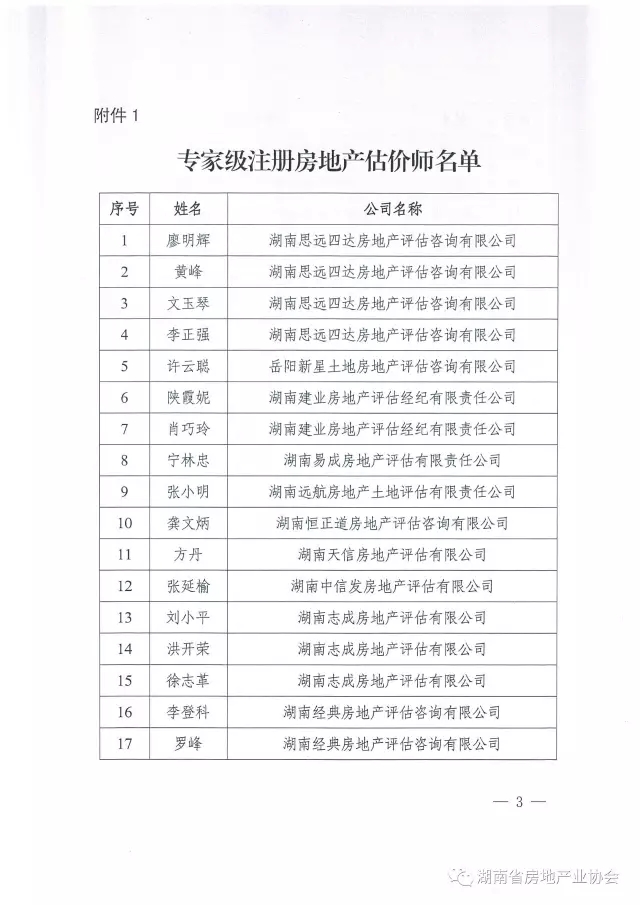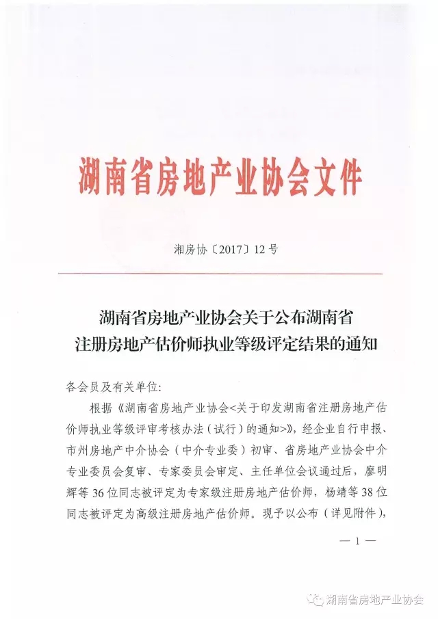 湖南省房地產(chǎn)業(yè)協(xié)會(huì)關(guān)于公布湖南省注冊(cè)房地產(chǎn)估價(jià)師執(zhí)業(yè)等級(jí)評(píng)定結(jié)果的通知