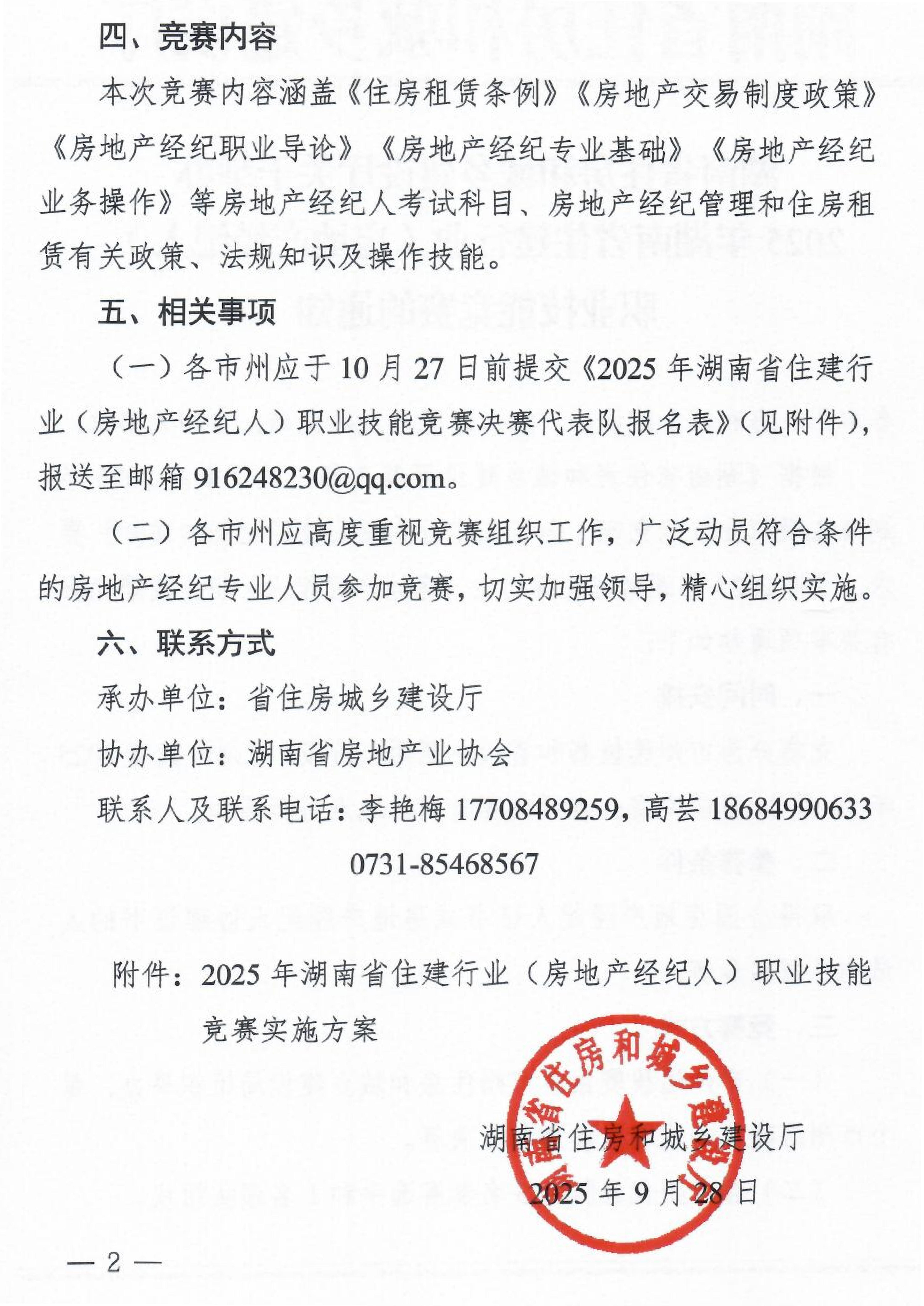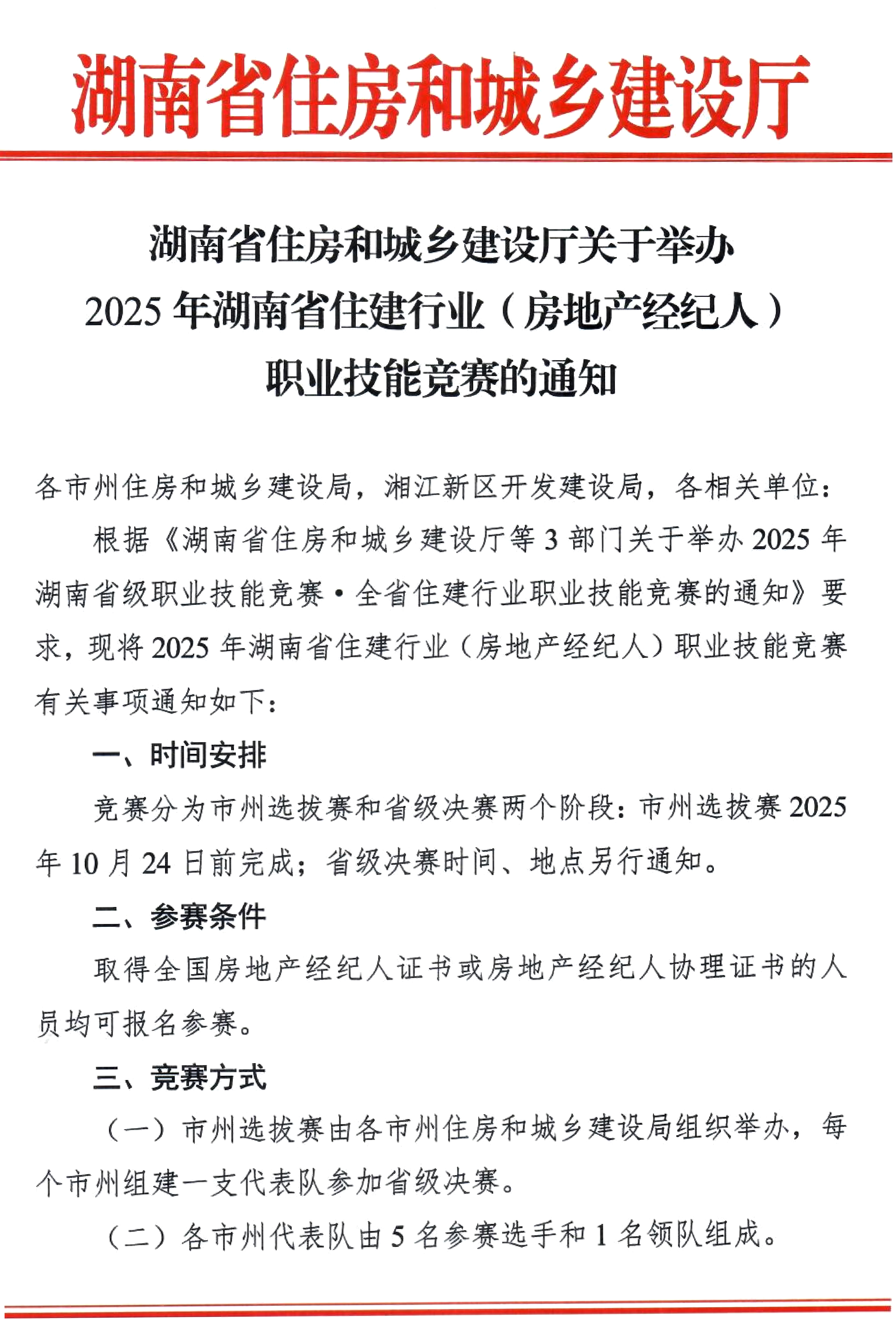 關于舉辦2025年湖南省住建行業(房地產經紀人)職業技能競賽的通知
