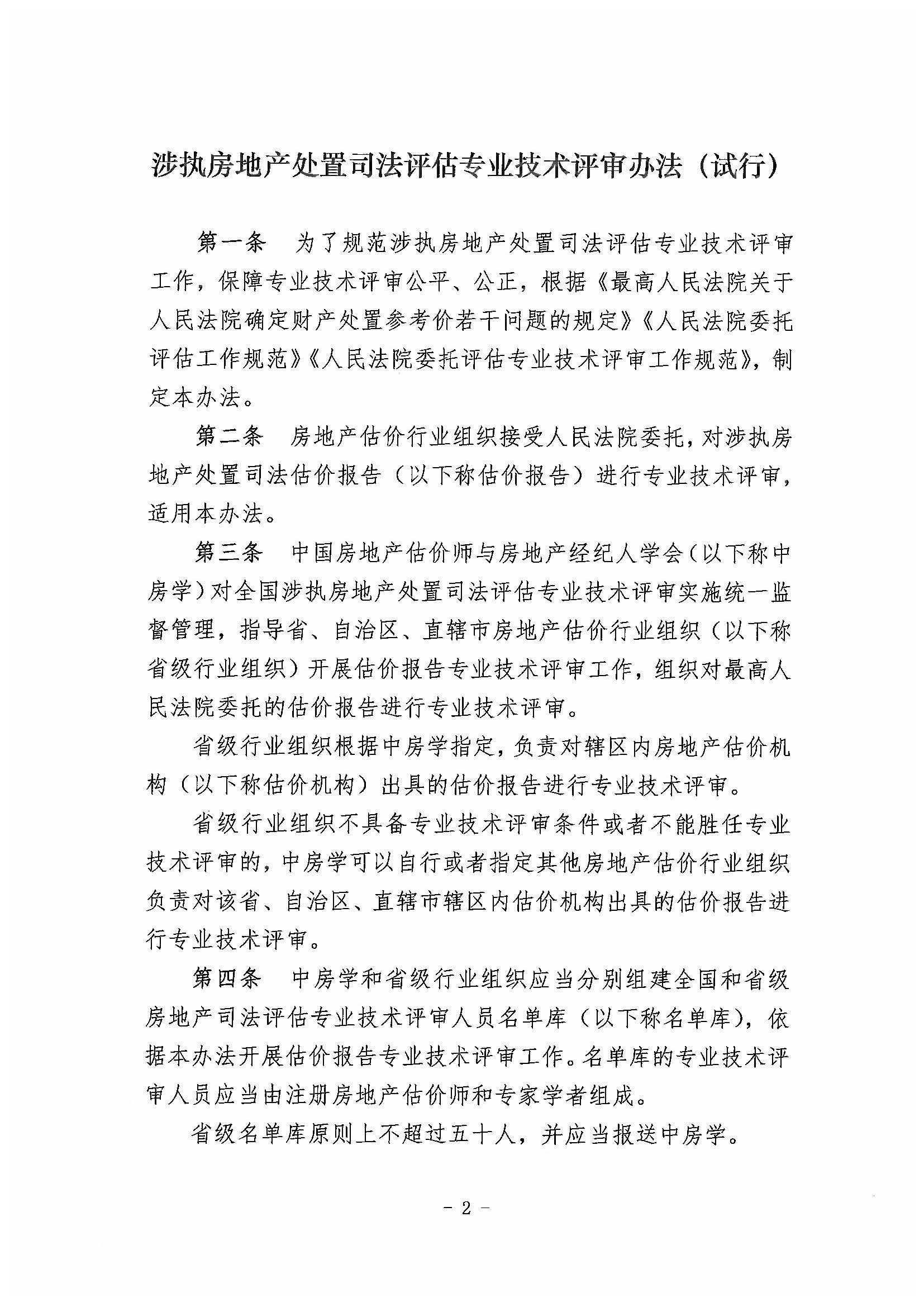 中國房地產估價師與房地產經紀人學會關于印發《涉執房地產處置司法評估專業技術評審辦法(試行)》的通知