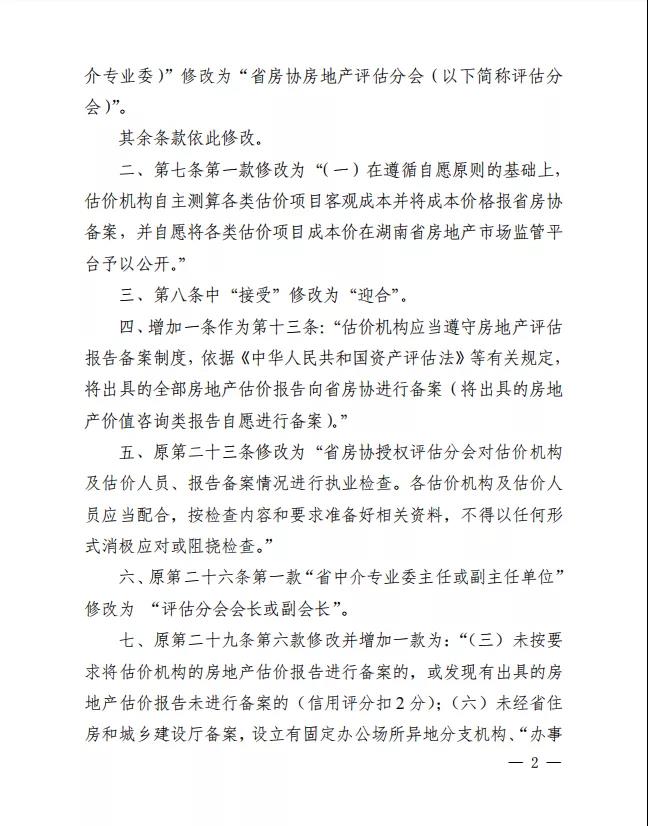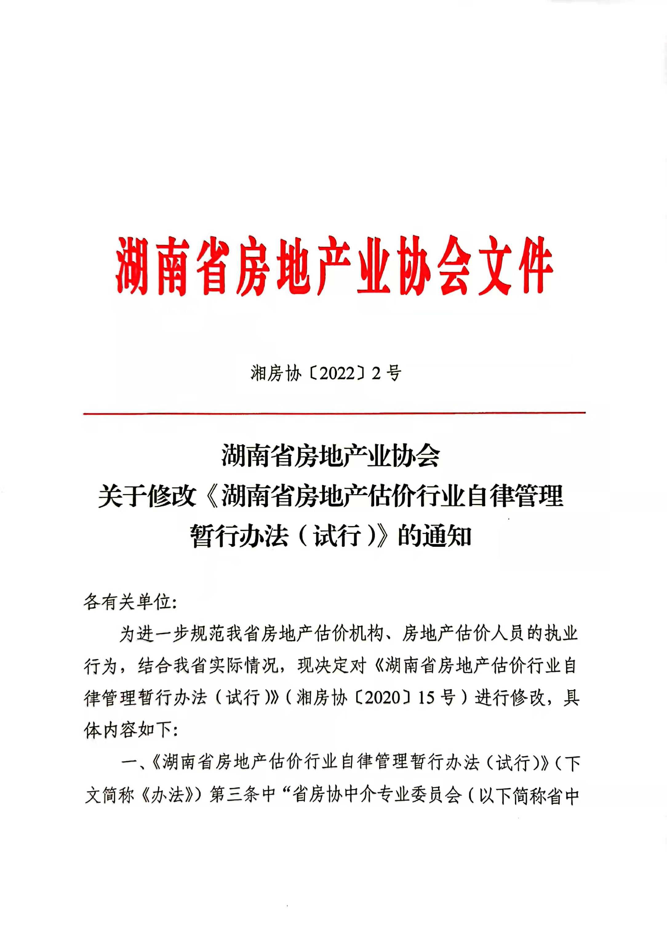 關于修改《湖南省房地產(chǎn)估價行業(yè)自律管理暫行辦法(試行)》的通知
