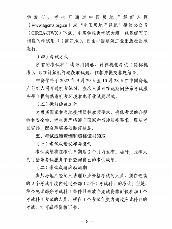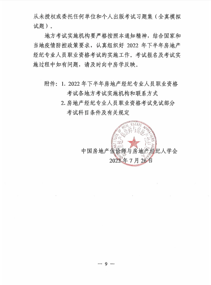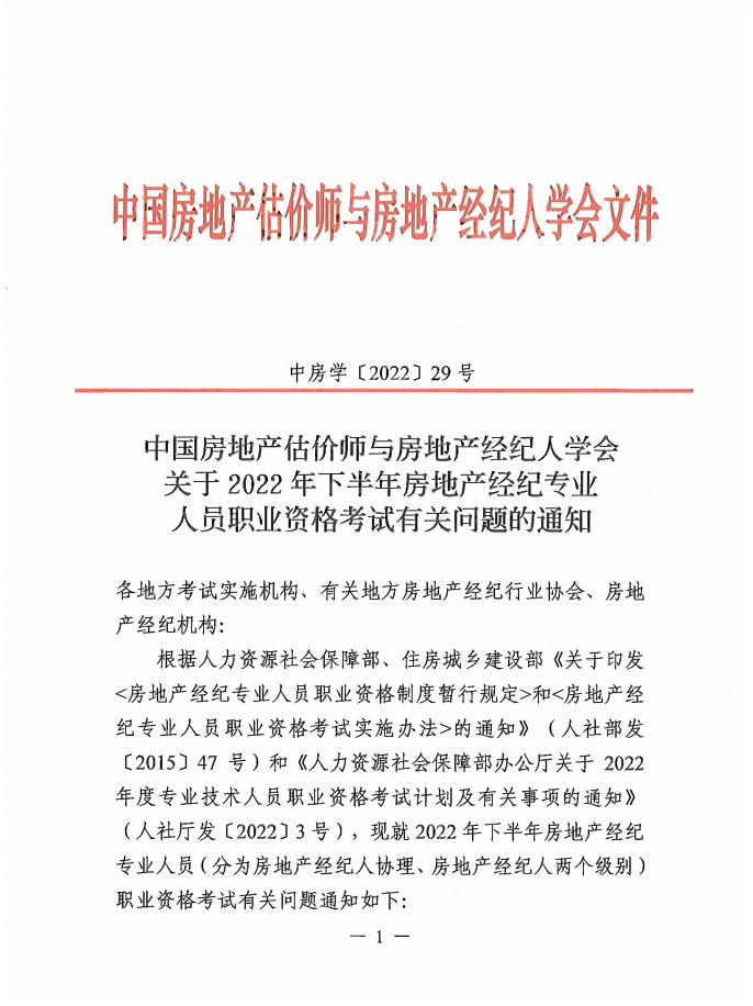 附件:中國(guó)房地產(chǎn)估價(jià)師與房地產(chǎn)經(jīng)紀(jì)人學(xué)會(huì)關(guān)于2022年下半年房地產(chǎn)經(jīng)紀(jì)專業(yè)人員職業(yè)資格考試有關(guān)問(wèn)題的通知