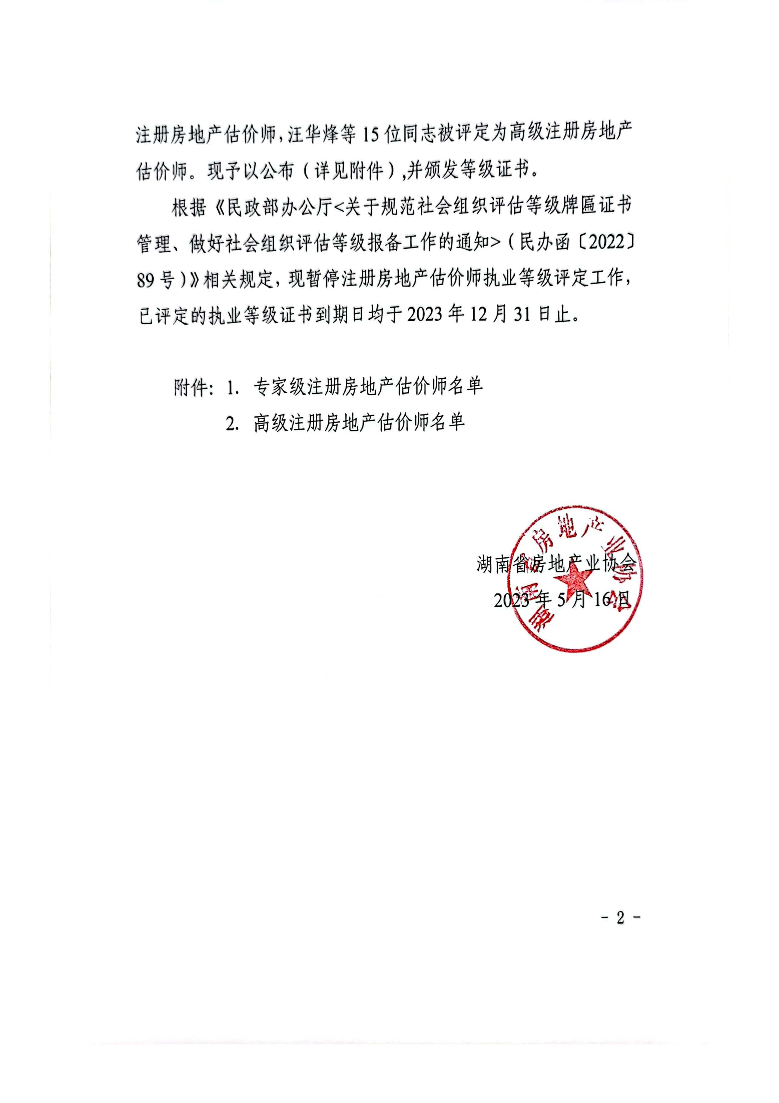 關(guān)于公布湖南省注冊房地產(chǎn)估價師執(zhí)業(yè)等級評定結(jié)果及暫停評定工作的通知