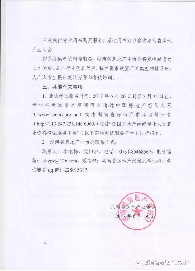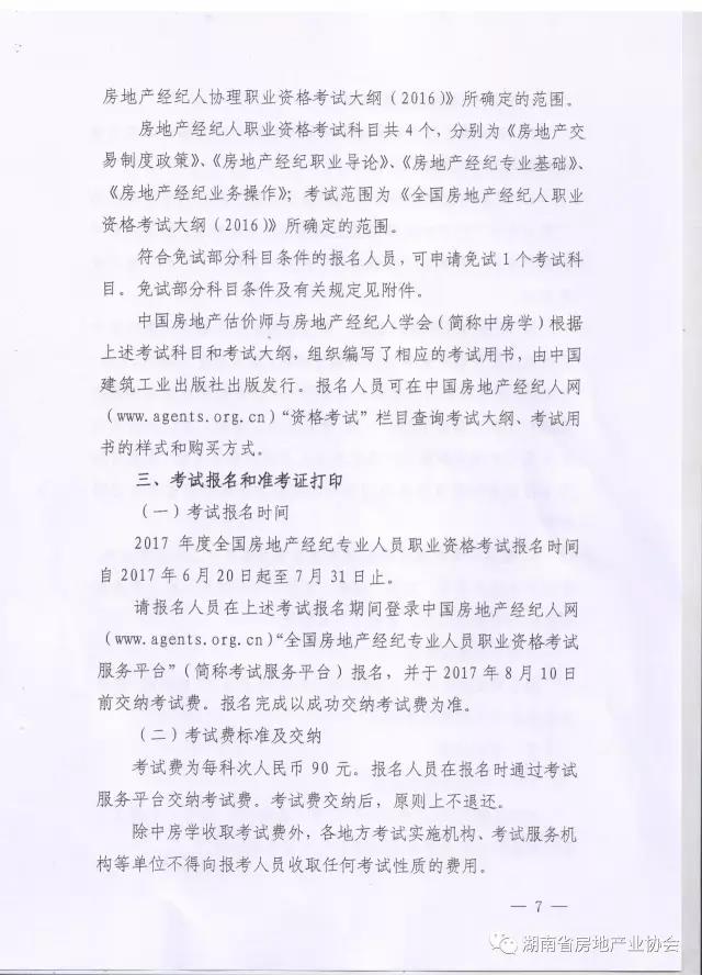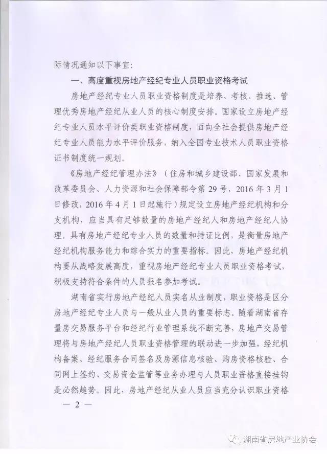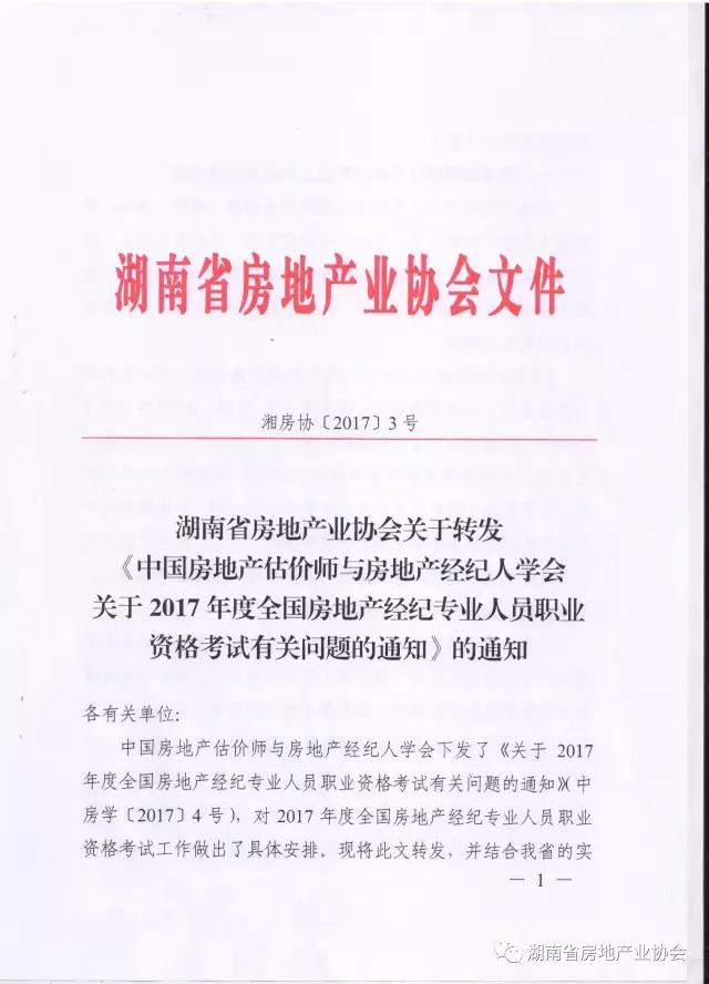 湖南省房地產業協會轉發《中國房地產估價師與房地產經紀人學會關于2017年度全國房地產經紀專業人員職業資格考試有關問題的通知》