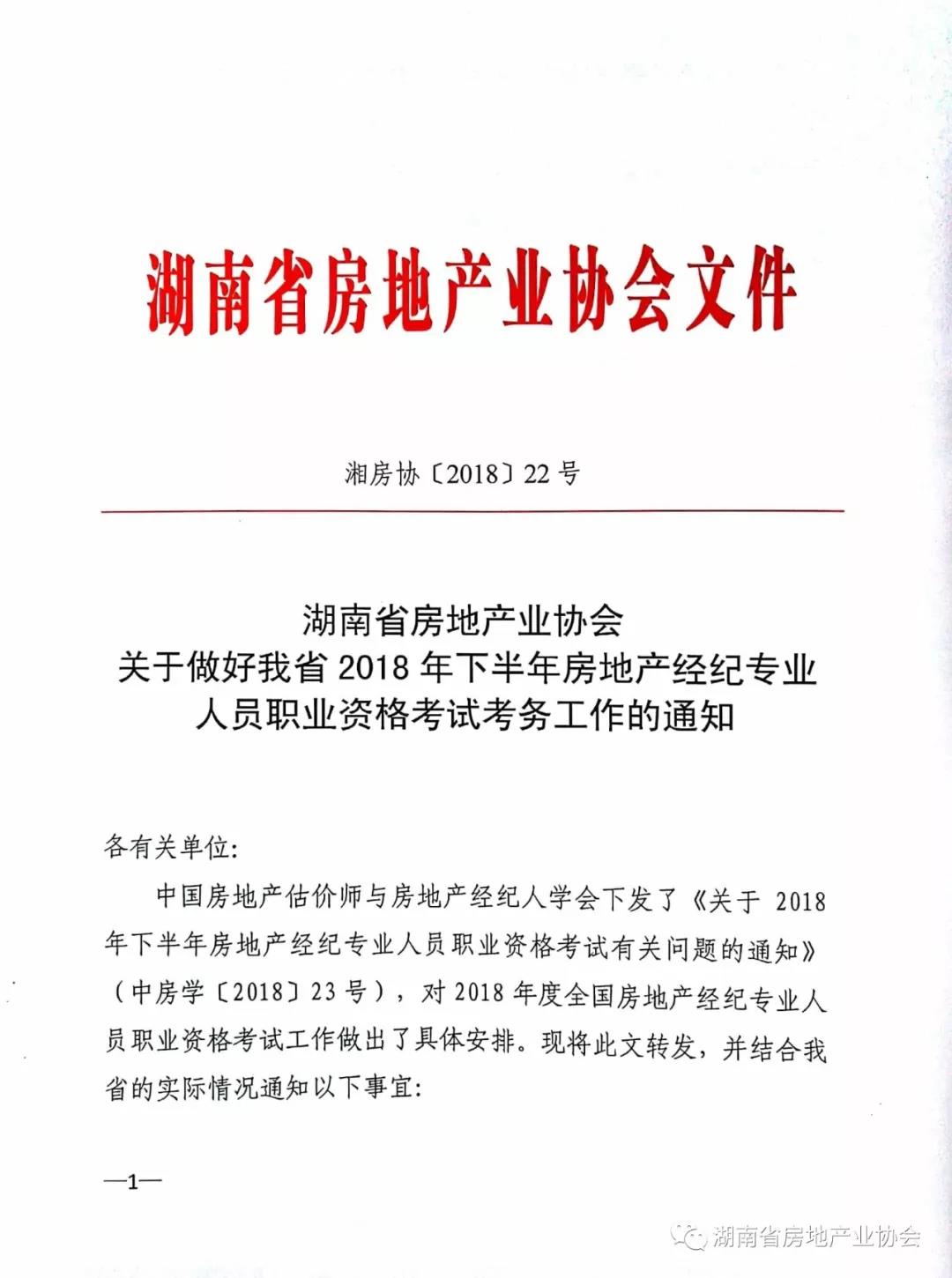 關于2018年下半年房地產經紀專業人員職業資格考試有關問題的通知