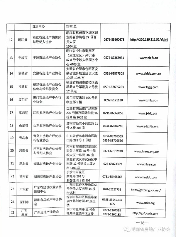 各地方考試實施機構、有關地方房地產經紀行業協會、房地產經紀機構:
