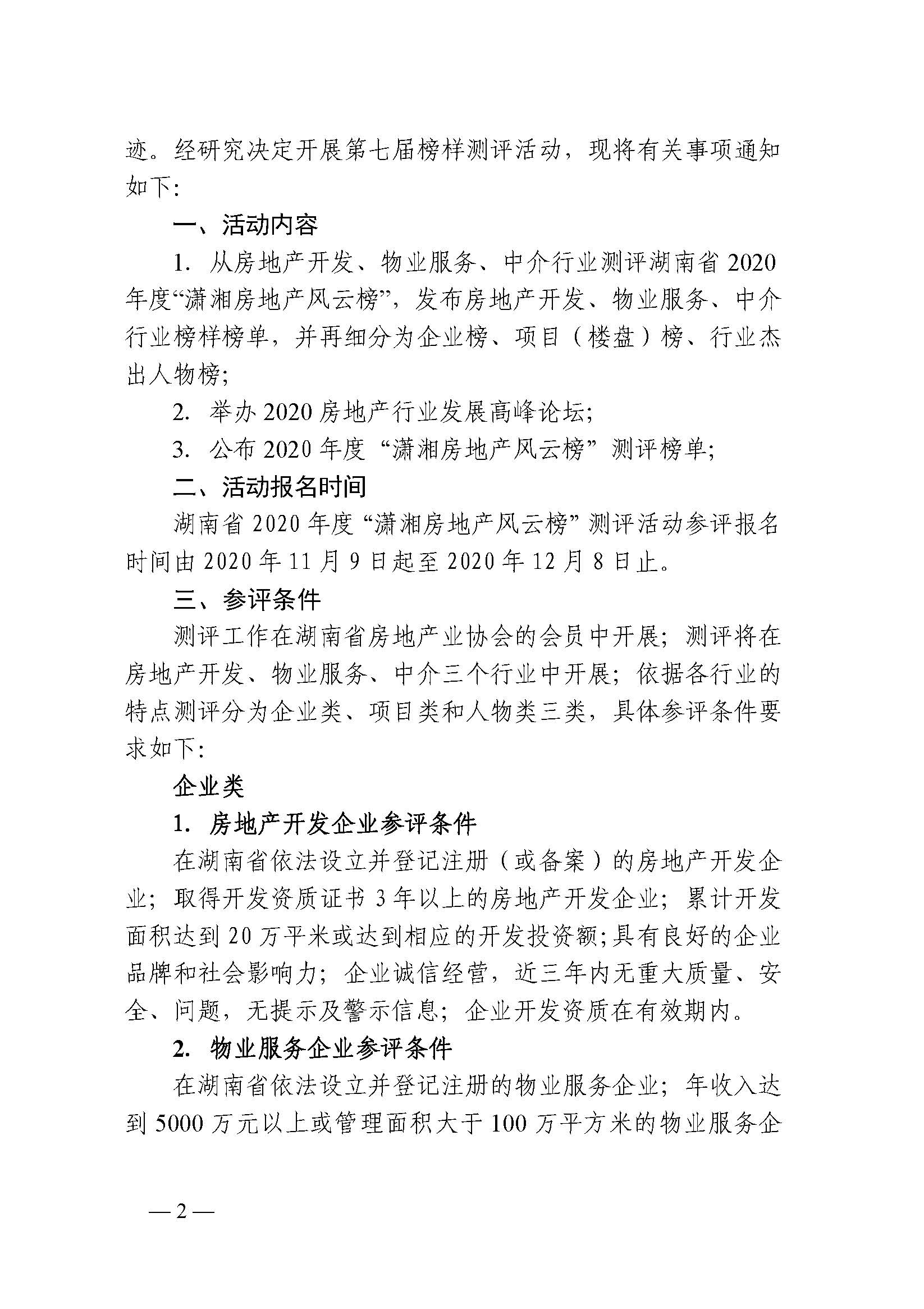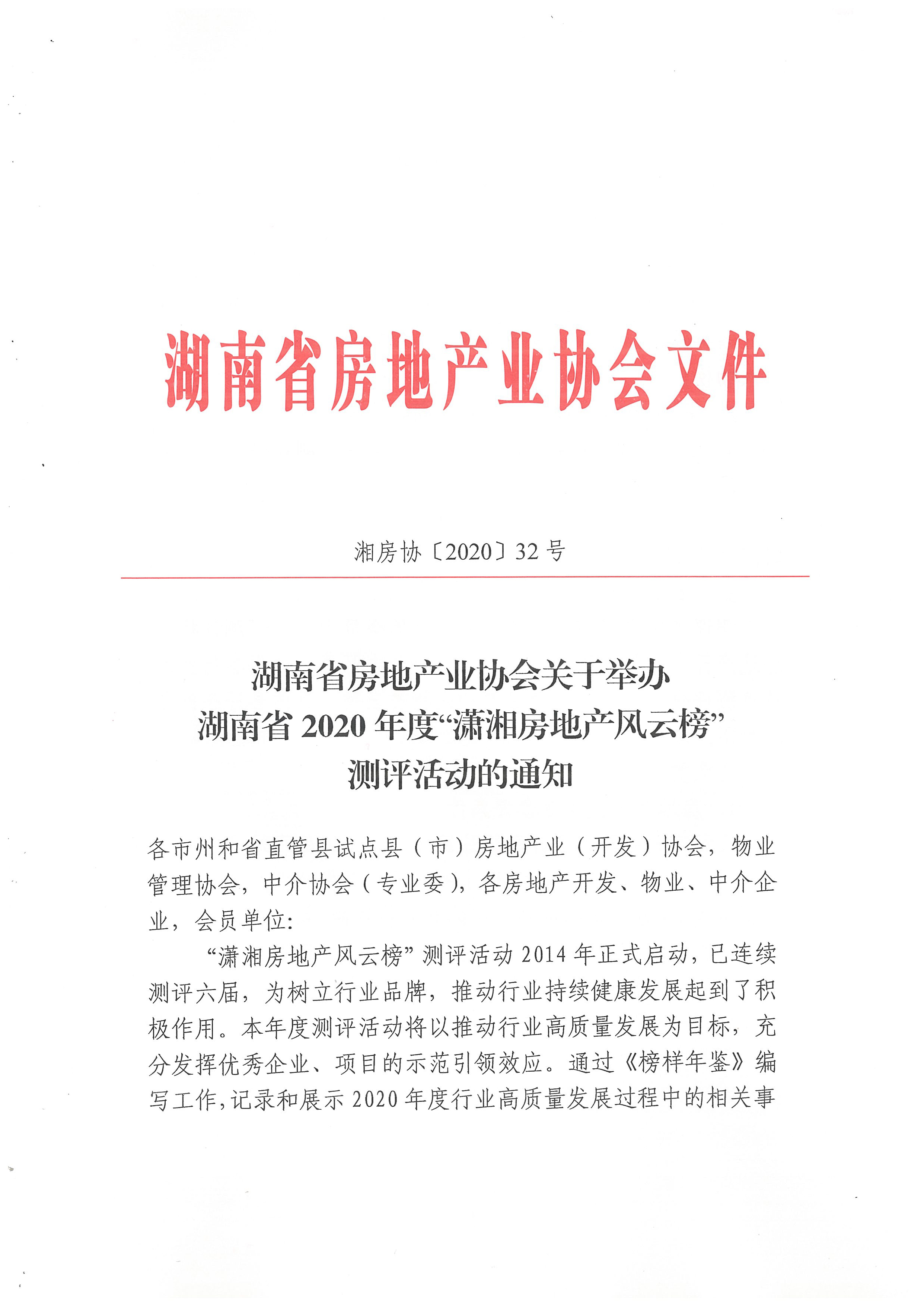 關于舉辦湖南省2020年度“瀟湘房地產風云榜”測評活動的通知