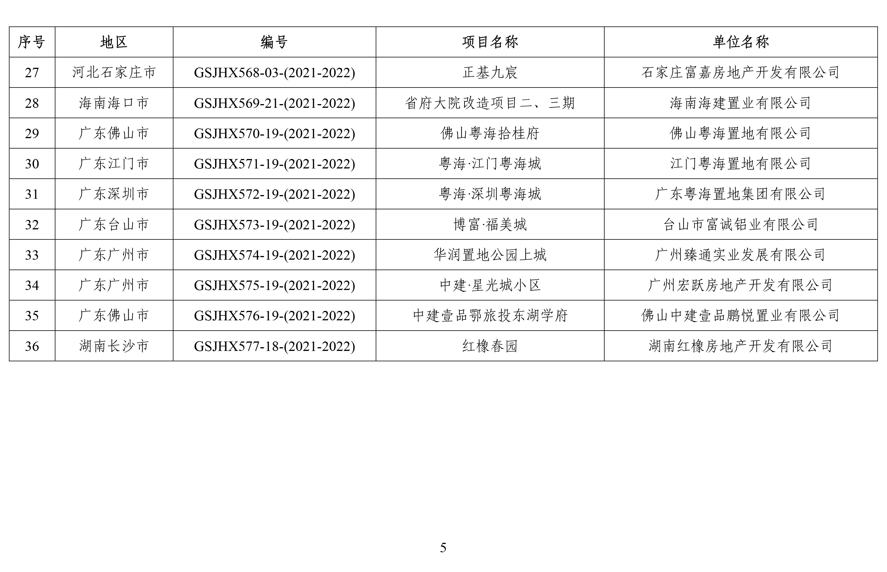 關(guān)于列入第十屆(2021-2022年度)“廣廈獎”第五批候選項目的通報