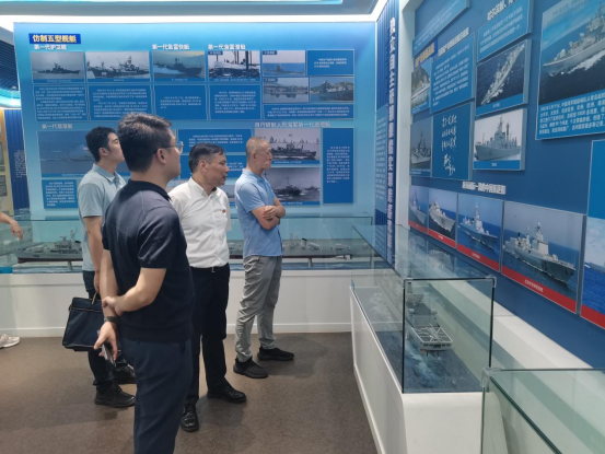隨后,全體黨員參觀了近現(xiàn)代海軍裝備主題展館教育基地。基地以實物、圖片、文字和模型的形式,介紹了鴉片戰(zhàn)爭以來的海軍武器裝備演變,重點展示了人民海軍成立以來艦船裝備的代表成果。