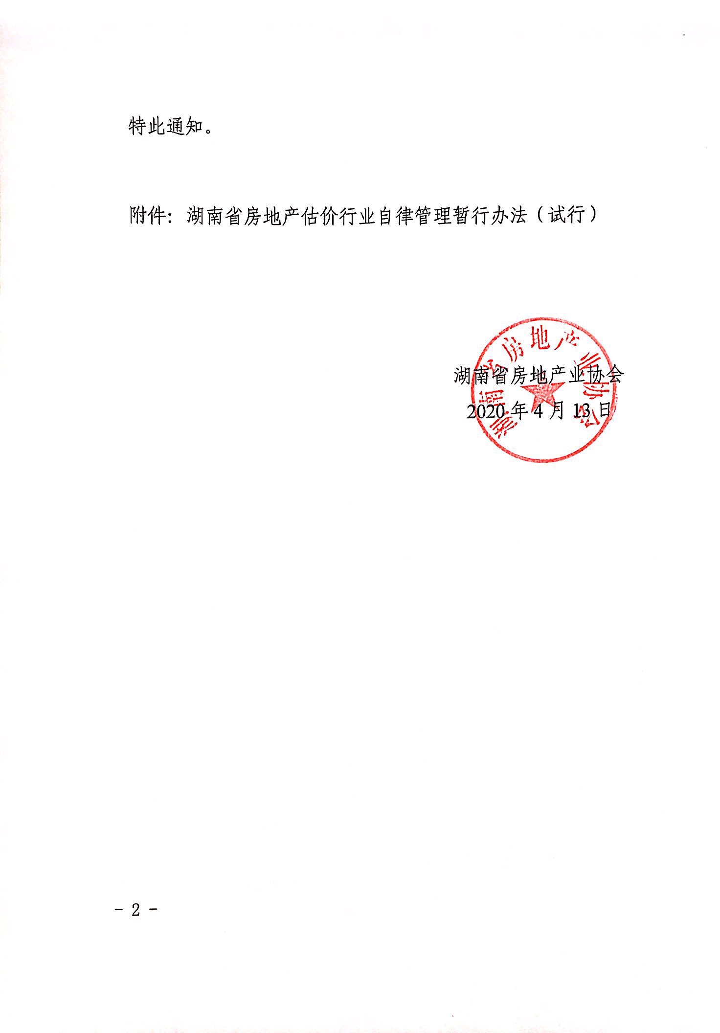 湖南省房地產(chǎn)業(yè)協(xié)會(huì)關(guān)于發(fā)布《湖南省房地產(chǎn)估價(jià)行業(yè)自律管理暫行辦法(試行)》的通知